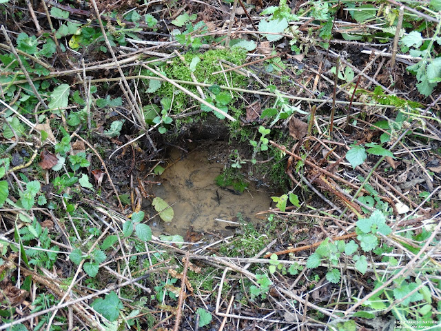 La siguiente fuente que debemos localizar es la conocida como "Fuente Los Tallos". Sabíamos que estaba al borde de "La Reguera Espines", por debajo de la senda que atraviesa el Valle. En esta caso su localización fue más difícil pero, al final, también logramos ubicarla. Se retiró la maleza que la rodeaba, la fotografiamos y fijamos, también sus coordenadas (43º 10´27.5" N - 5º 53´10.1"W).