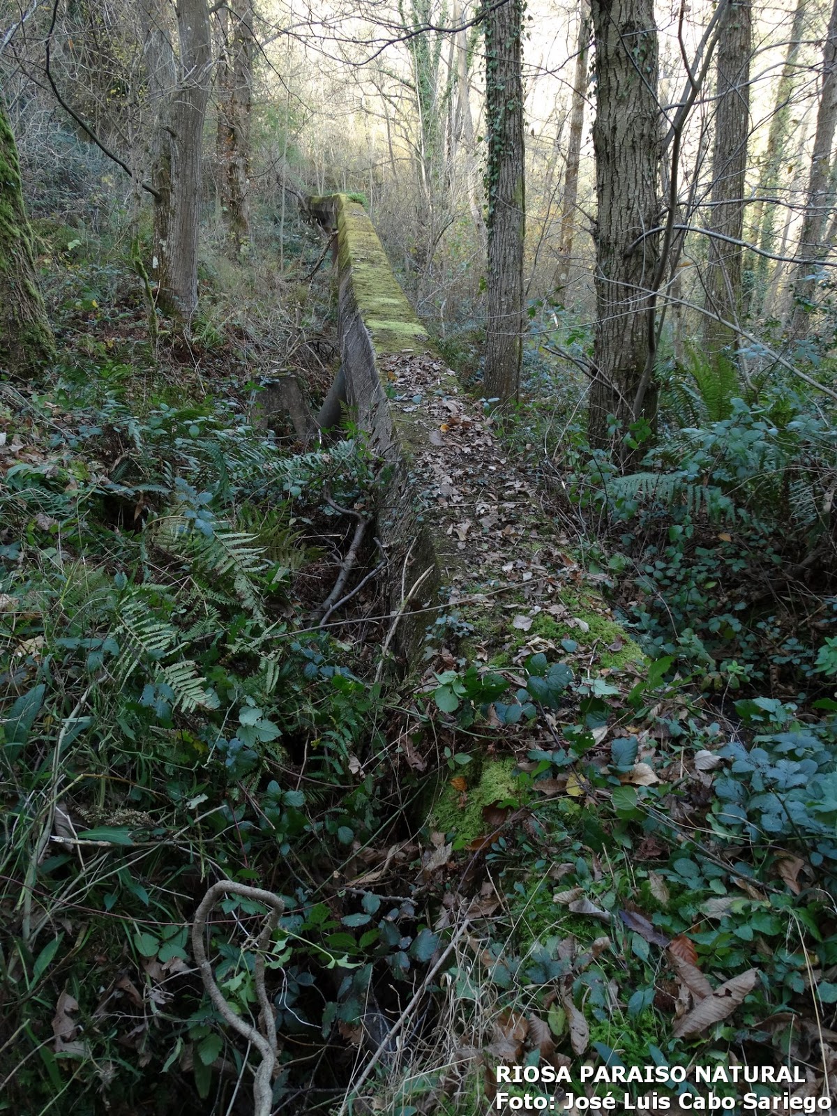 Pues bien, tanto el agua procedente de los manantiales del río Code como del manantial del Río Llamo -ambos en Riosa-, a partir de aquí - Arroxines -, discurría por el canal de forma subterránea.